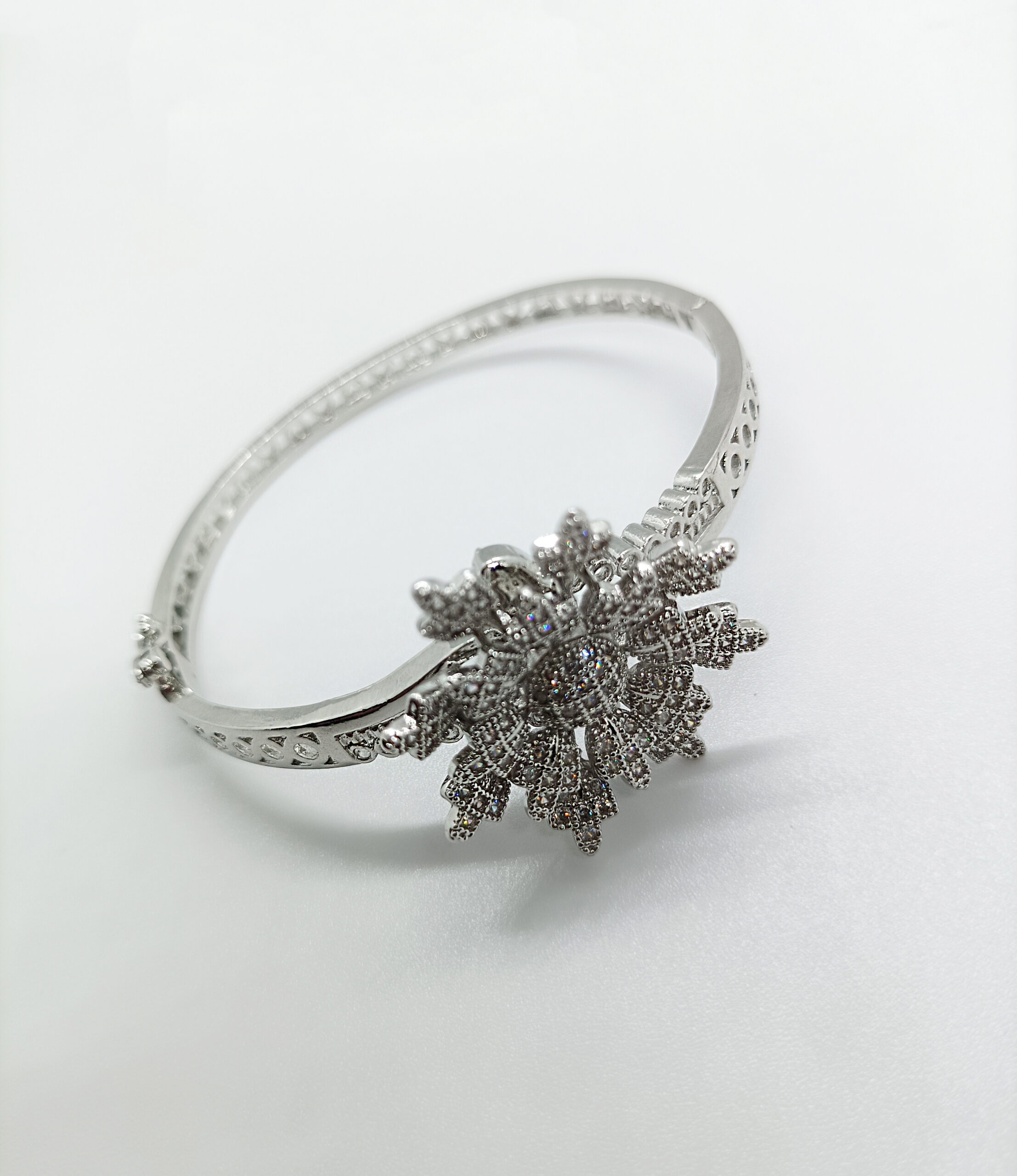 The detailed golden framework enhances the icy sparkle of the stones, creating a luxurious contrast that’s perfect for festive occasions, weddings, or elegant evening wear.