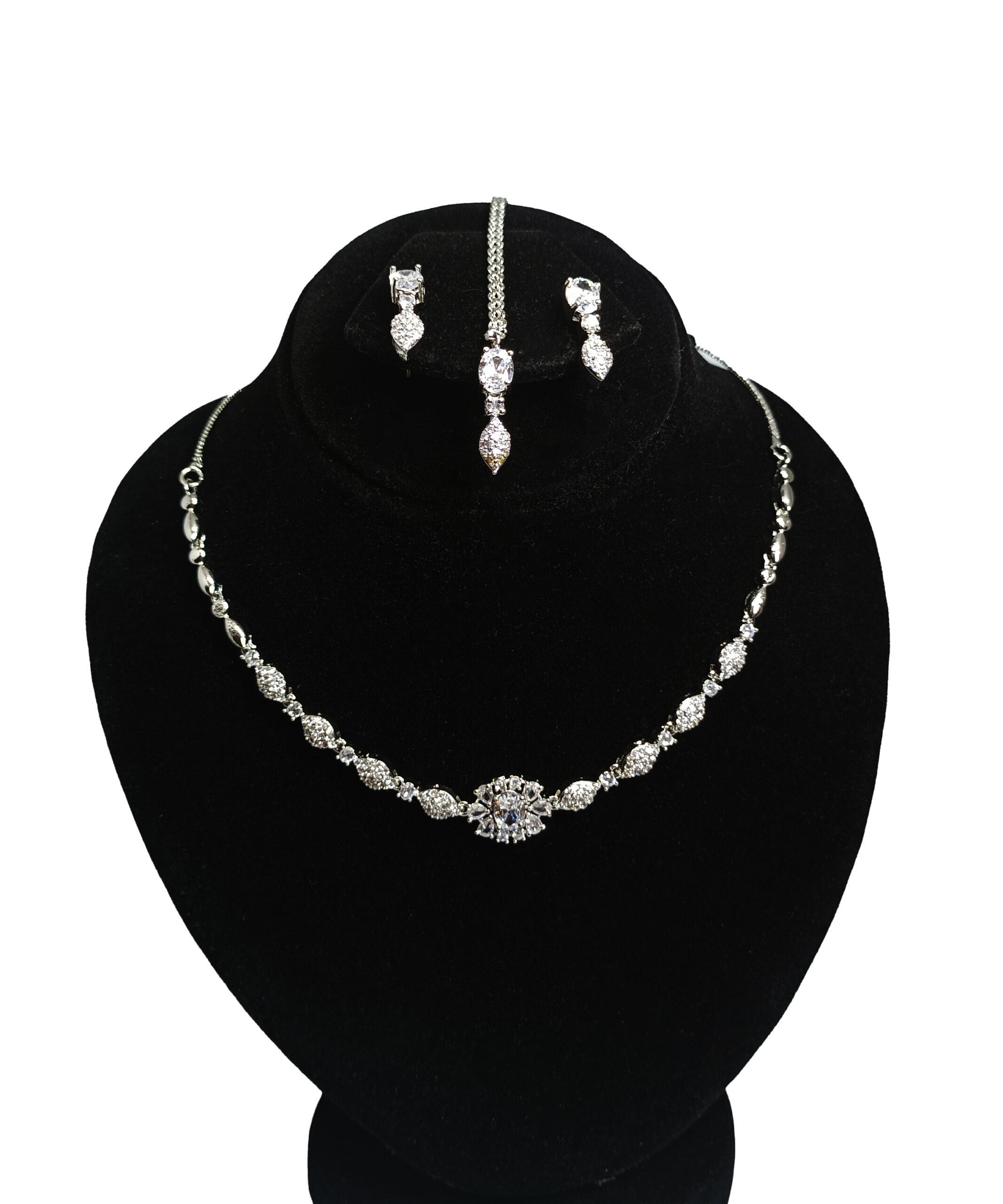 Elegant 3-piece jewelry set featuring a necklace, earrings and tikka.
