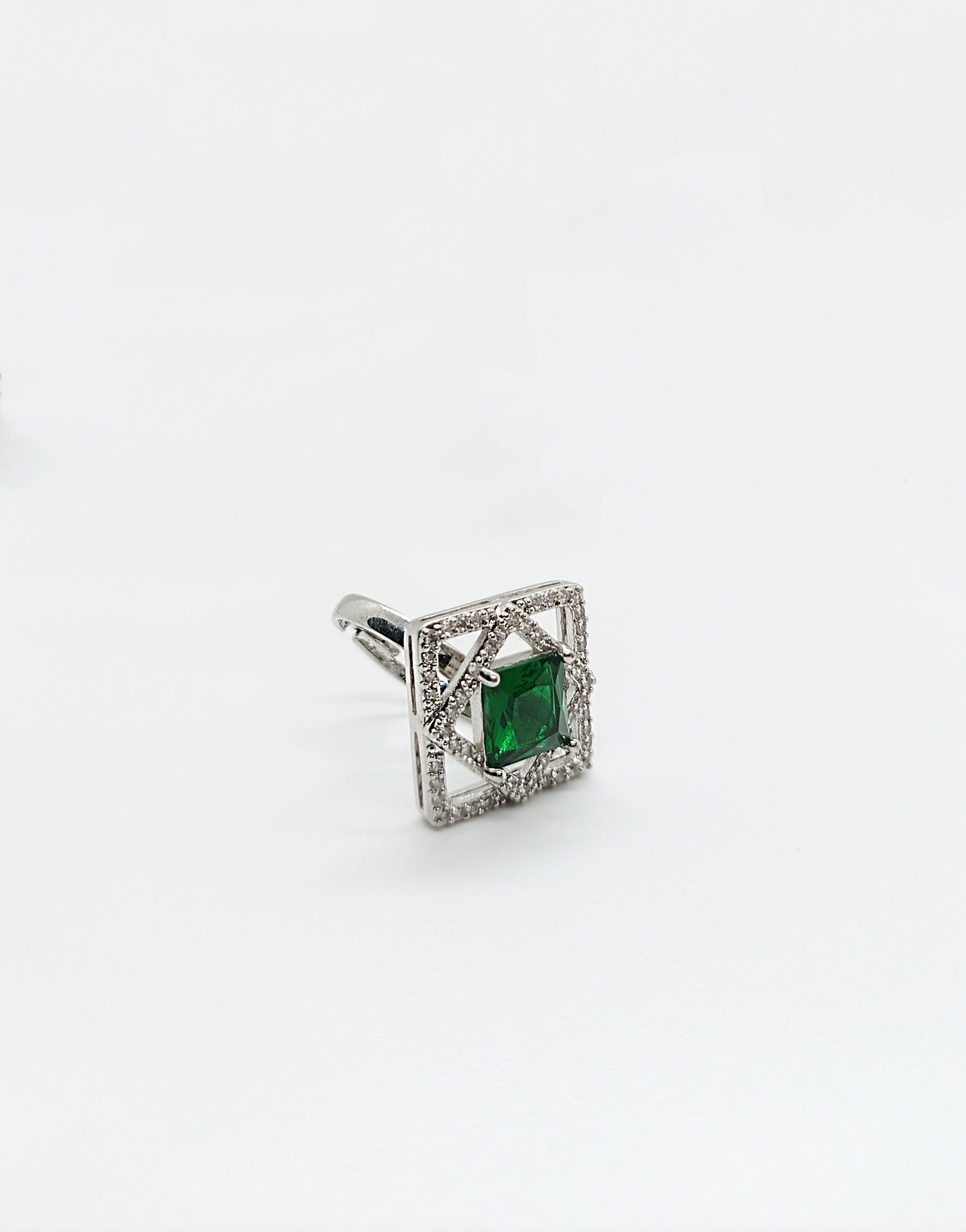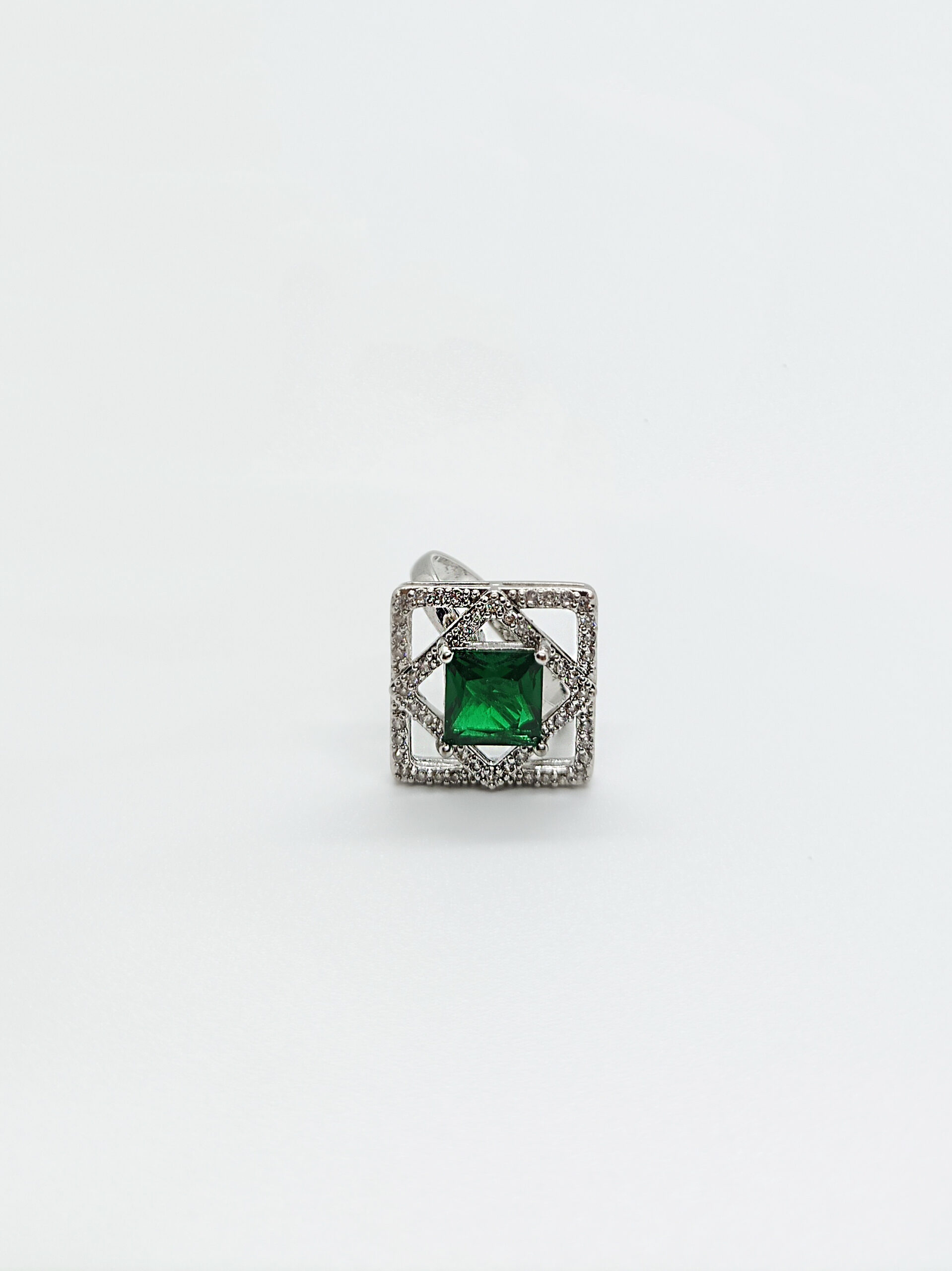 • Anchored by a deep green, princess-cut gemstone, this ring channels a bold sense of refinement. The vibrant emerald tone stands for balance, growth, and luxury, giving the piece a commanding yet elegant presence.